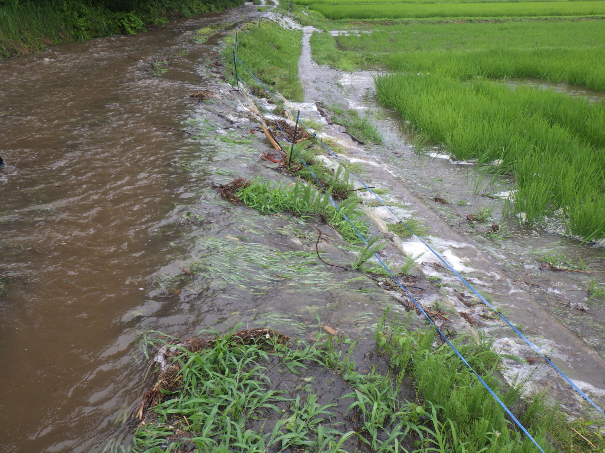 R7年度の活動紹介 令和7年の夏、各地で災害級の暑さが続出する一方で、集中豪雨による被害が日本各地で発生しました。7月10日、白河市付近と泉崎村付近に「記録的短時間大雨情報」が発表され、芳賀須内保全会の地区でも猛烈な雨に見舞われました。翌日、多面的機能支払交付金の活動の一つである「異常気象時の対応」の点検を実施したことで、被害箇所の把握・自治体との連携へと繋がり、早期対応に至りました。※右の写真をクリックすると拡大してご覧いただけます